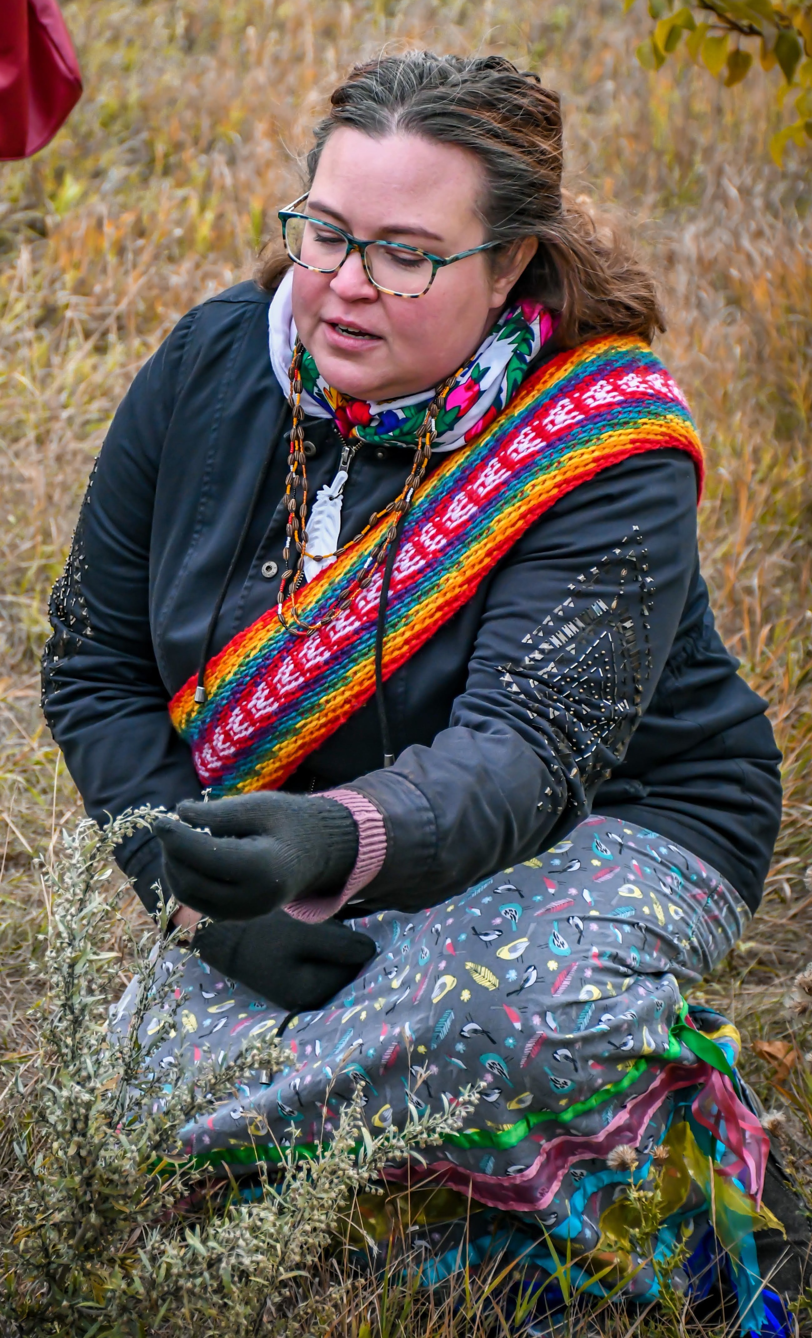 Kalyn Kodiak: Walking on the edge of two worlds, Kalyn is a student of Michif Lifeways and modern western medical research regarding phytochemicals. She is a resource on traditional medicines to the Metis communities of Southern Alberta, and aen aapikayahk sayncheur flayshii (Metis sash weaver)